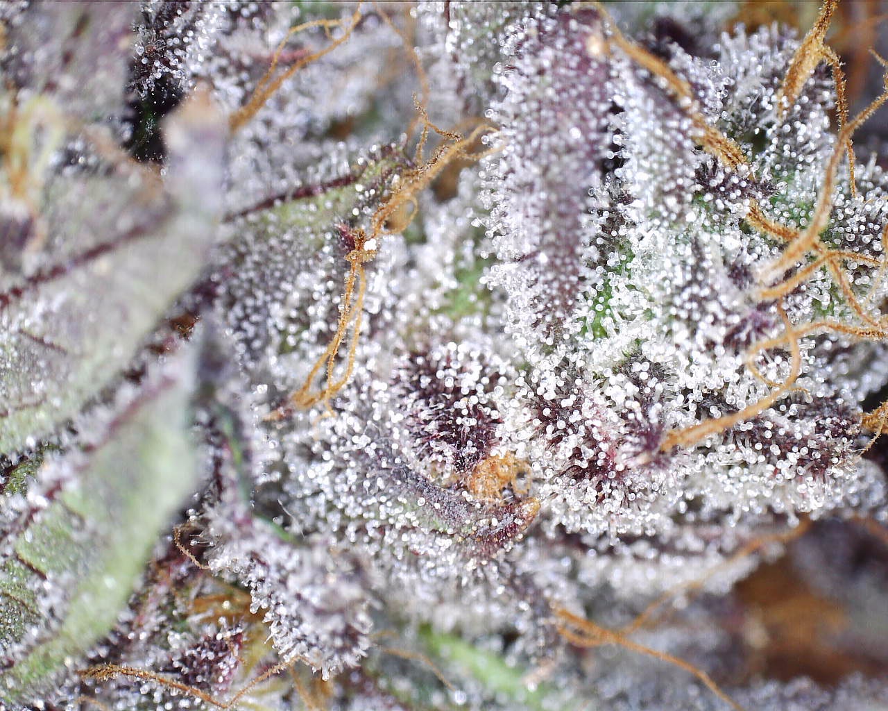 OMFG is an evenly balanced hybrid strain (50% indica/50% sativa) created through crossing the iconic Red Pop X Runtz strains. One taste of this perfectly balanced hybrid and you’ll be screaming her name! OMFG packs an amazing full-bodied high that’s filled with heady laughter and physical relaxation. You’ll feel the cerebral effects wash over you first, lifting your mood and filling you with a giddy euphoria. A light tingly sense comes next, working its way behind the eyes before spreading throughout your entire body, helping you to feel fully relaxed and at ease from head to toe. You’ll find yourself hit with a pretty heavy case of the giggles at this point, laughing at anything and everything around you. With these effects and its super high 31-33% average THC level, OMFG is often suggested to treat experienced patients suffering from conditions such as insomnia, Multiple Sclerosis, depression, chronic stress or anxiety and inflammation. This bud has a sweet and sour citrusy flavor with a punch of spicy black cherries upon exhale. The aroma is very similar, with a sour citrusy overtone accented by spicy cherries and sweet tropical fruits. OMFG buds have airy oversized spade-shaped emerald green nugs with thick red-orange hairs and tiny chunky white crystal trichomes.