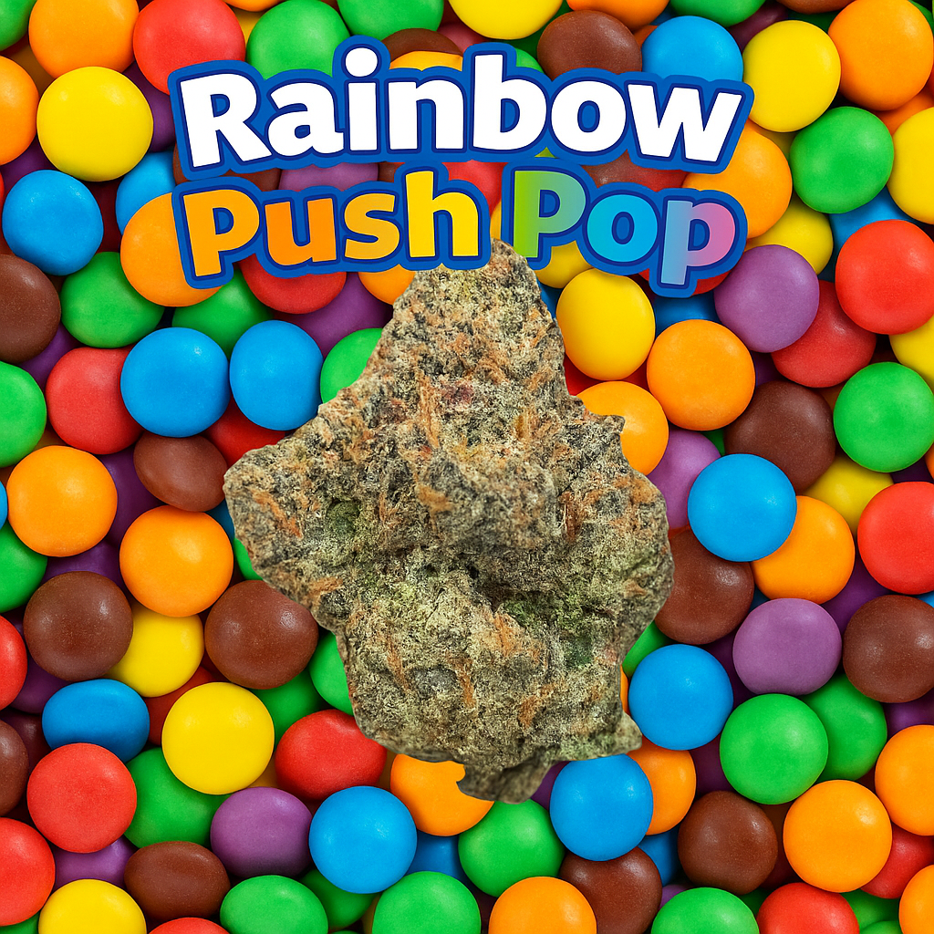 The high starts with a euphoric lift that clears the mind and uplifts the mood before melting into a relaxing body buzz. Rainbow Push Pop hits the sweet spot between bliss and sedation — great for winding down, easing stress, or helping with sleep and appetite.