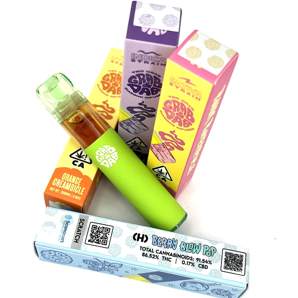 Grab & Dab Diamonds Infused Live Resin Vape | 1 Disposable Vape Cart | 2 Gram High Potency THC | 2000mg