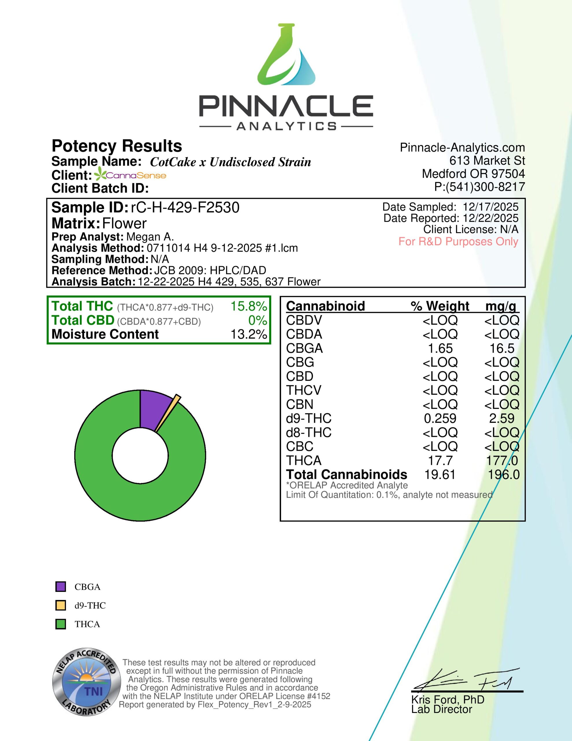 Total THC: 15.8% ((THCA*0.877)+THC)