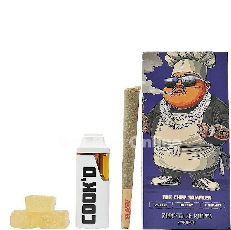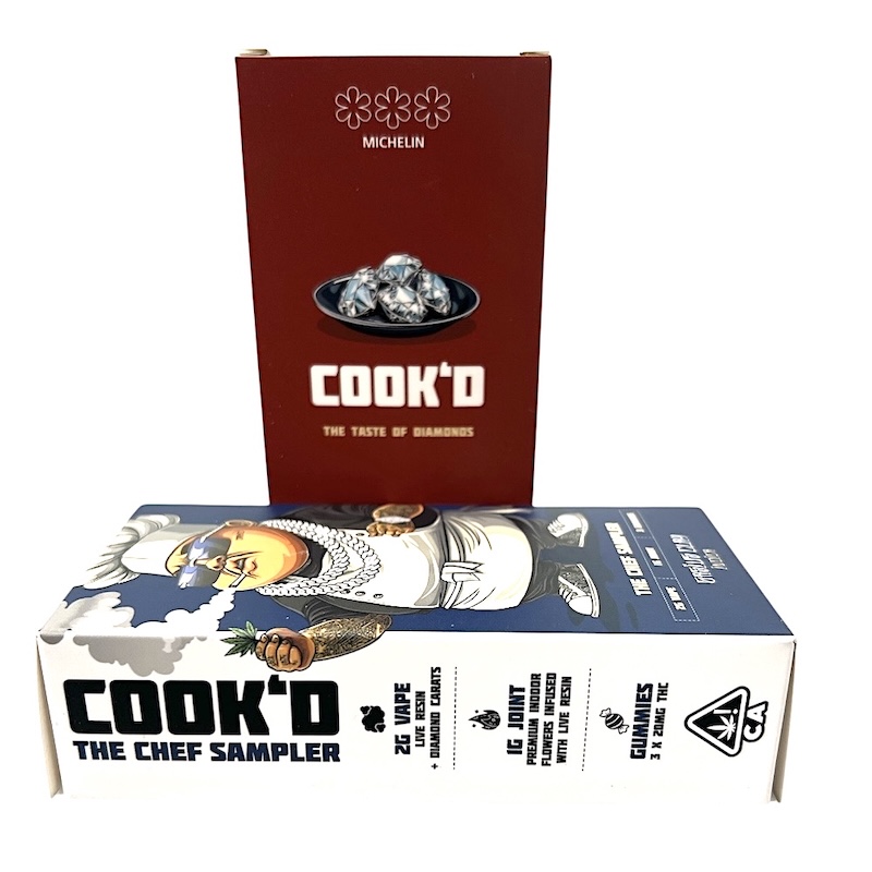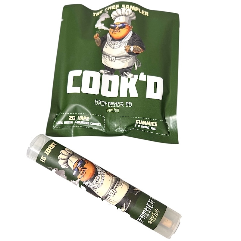 The Cook’d Chef Sampler Pack is a premium, all-in-one experience curated for connoisseurs and adventurous users alike — it includes a 2g Live Resin + Diamonds disposable for smooth, flavorful hits. A premium indoor infused 1g pre-roll for a classic yet elevated smoke. As if that wasn’t enough, you also get three 20mg gummies to round out the session with a more mellow edible component. Packed into one stylish kit, this sampler delivers a layered, customizable journey — whether you’re in the mood for fast draws, slow savoring, or a controlled edible dose. A must-try for every enthusiast!