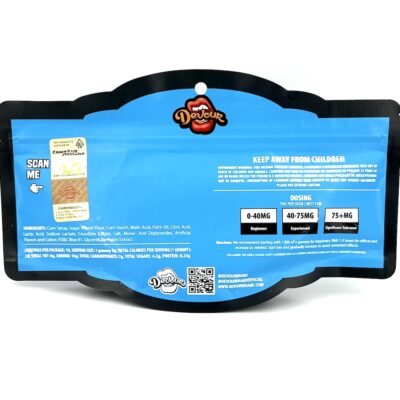 Devour Directions: It is recommended to start with 1/8 of a strip for beginners. Wait 1-2 hours for full effects and increase as needed. Duration: 2 – 5 hours.